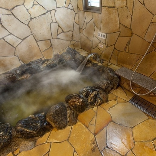 地下800mから湧き出る⾃家源泉の”美⼈の湯”は24時間、